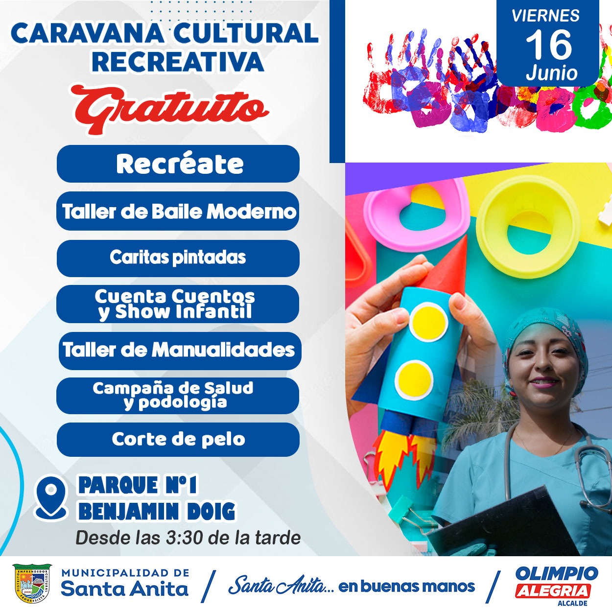 ¡Prepárate para una experiencia inolvidable en nuestra Caravana Cultural Recreativa! Únete a nosotros y descubre una amplia gama de talleres y servicios de salud diseñados para tí y tu familia. No pierdas la oportunidad de disfrutar de actividades emocionantes y cuidar de tu bienestar. ¡Tu salud es nuestra máxima prioridad! ![]()